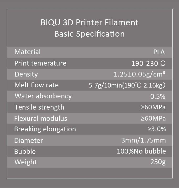 Filament type : 3d printer PLA 250 g filament